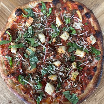 Signature roasted garlic sauce, pepperoni, ricotta, drizzled with chili infused honey, and topped with fresh basil.