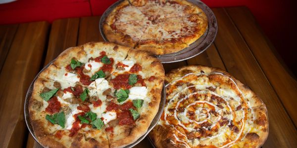 Pick two 14" pizzas and our choice of any regular-sized salad. (Soft drinks for $2 each, Extra 14" pizzas for $17 more, Add a cannoli for $4 more)