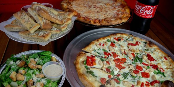 A slightly bigger family combo that feeds 4-6. It's great for adults who want something different than the kids. This special consists of one 16" traditional pizza, one 14" specialty pizza, ten classic breadsticks, a regular house salad and a 2 liter soft drink.